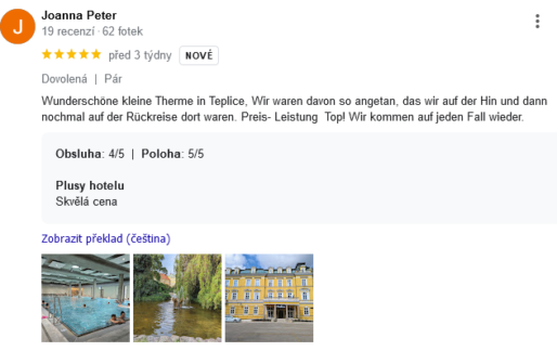 „Wunderschöne kleine Therme in Teplice, Wir waren davon so angetan, das wir auf der Hin und dann nochmal auf der Rückreise dort waren. Preis- Leistung Top! Wir kommen auf jeden Fall wieder.„